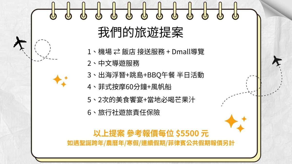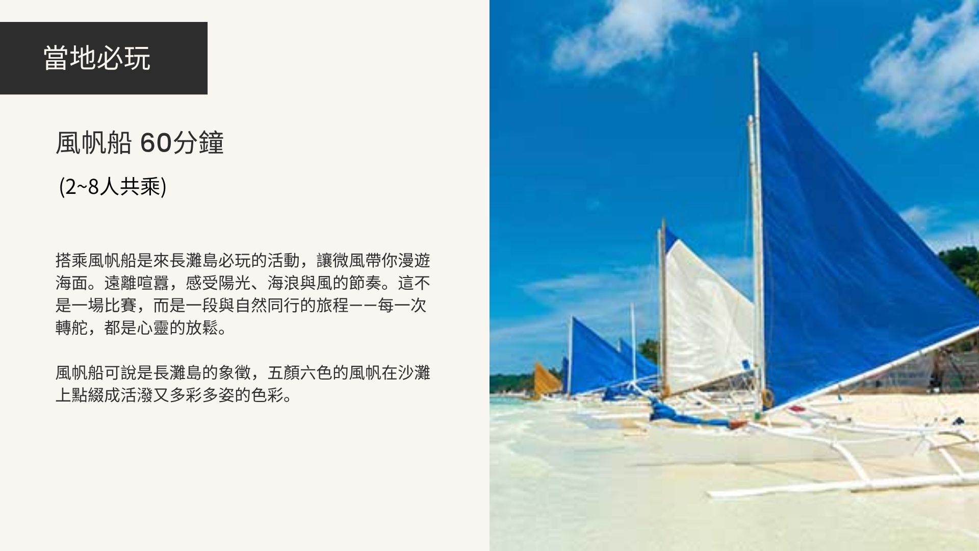 • 長灘島所有當地行程、活動與接送皆為合車合船操作